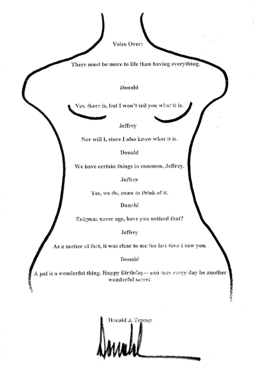 Just one day after the story was published, Trump’s lawyer Alejandro Brito filed suit in Florida alleging “overwhelming financial and reputational damages to President Trump, expected to be in the billions of dollars” and claiming that reporters Khadeeja Safdar and Joe Palazzolo “concocted this story to malign President Trump’s character and integrity and deceptively portray him in a false light.” Two months later, the House Oversight Committee subpoenaed the birthday book compiled by Epstein’s accomplice Ghislaine Maxwell, with an image that matched the reporters’ description exactly.